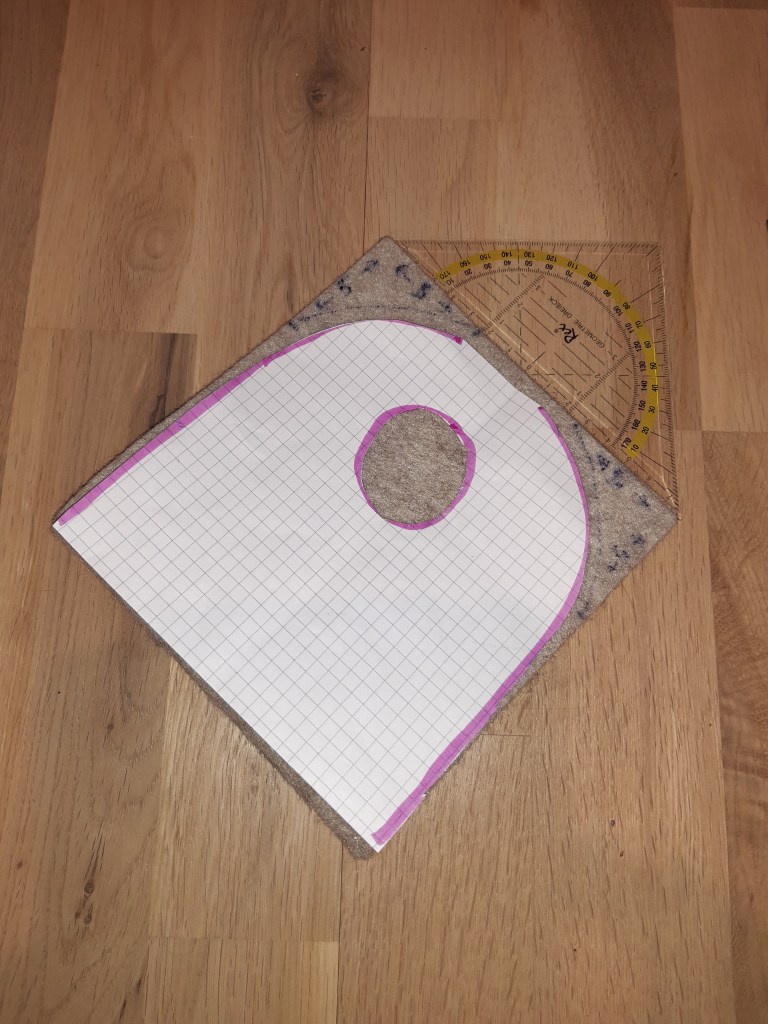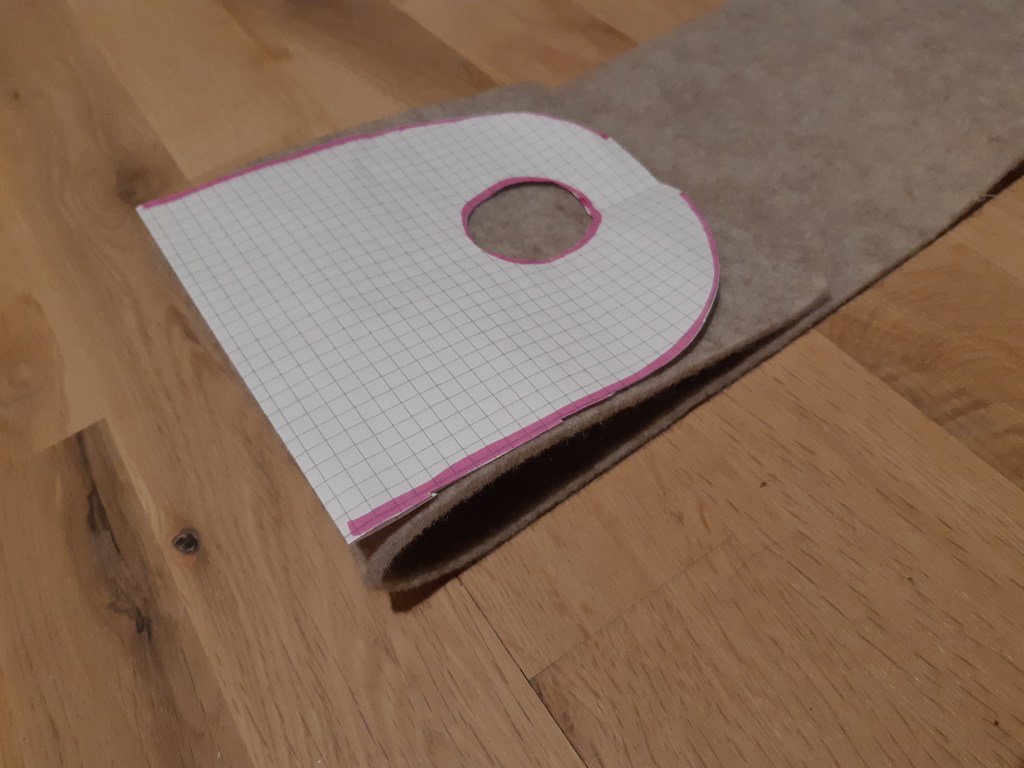 Zunächst legst Du den Filz doppelt, in einer Größe, dass die Vorlage gut Platz hat.