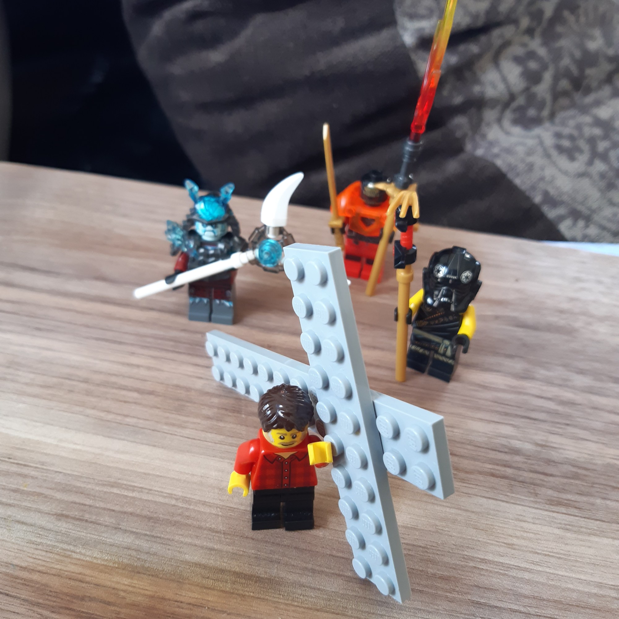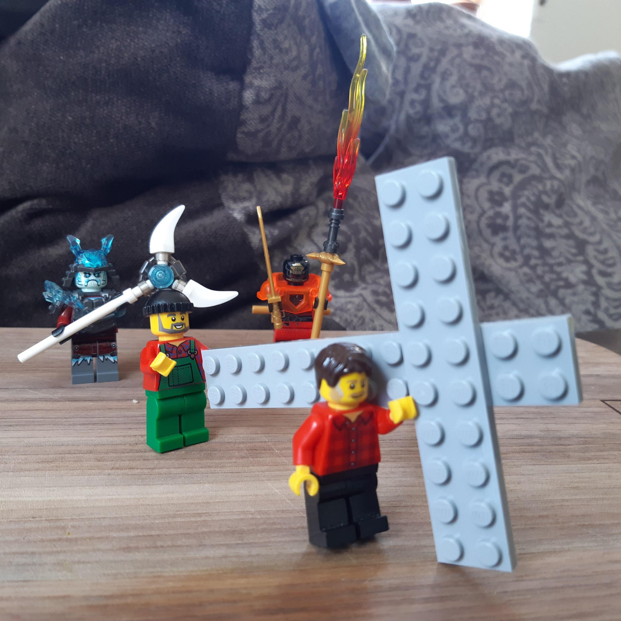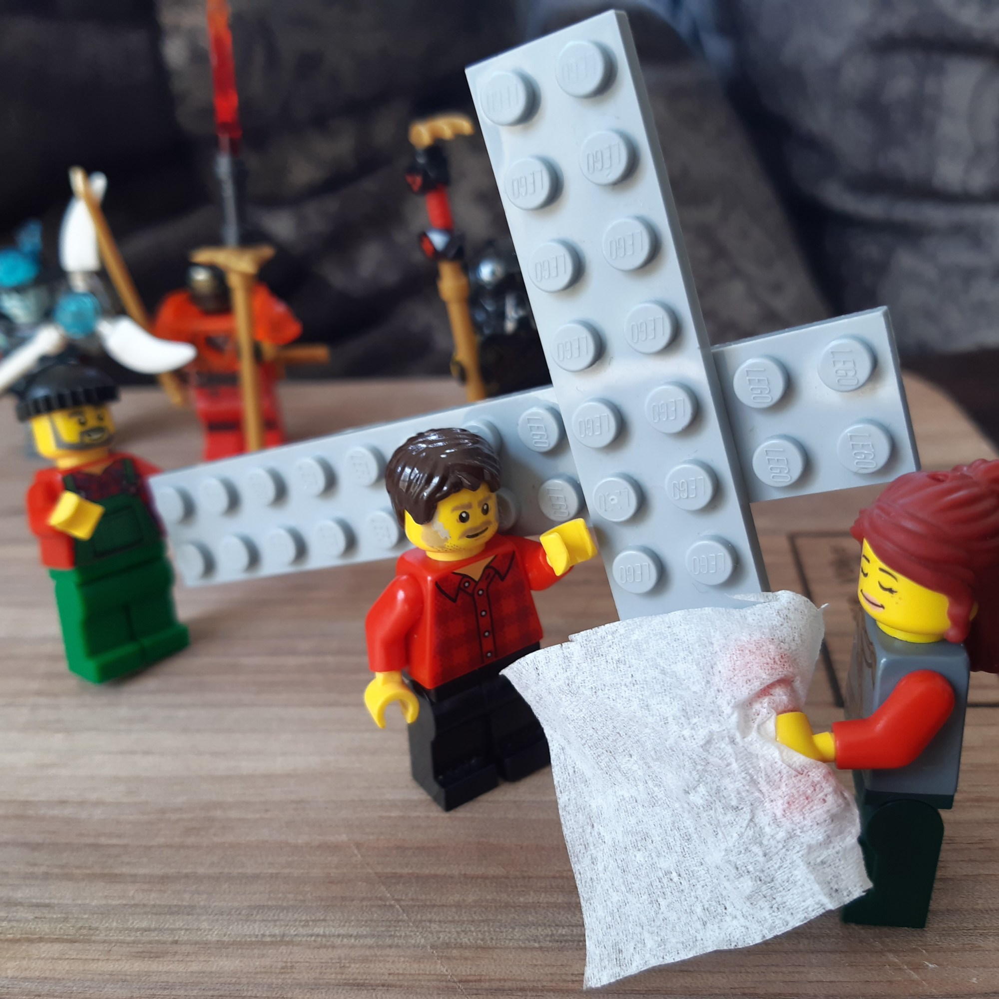 Dieser tolle LEGO-Kreuzweg schaut sehr groß aus. Aber schaut mal genauer: das ist alles nur auf einem Kuchenblech! Was könnt Ihr alles entdecken?