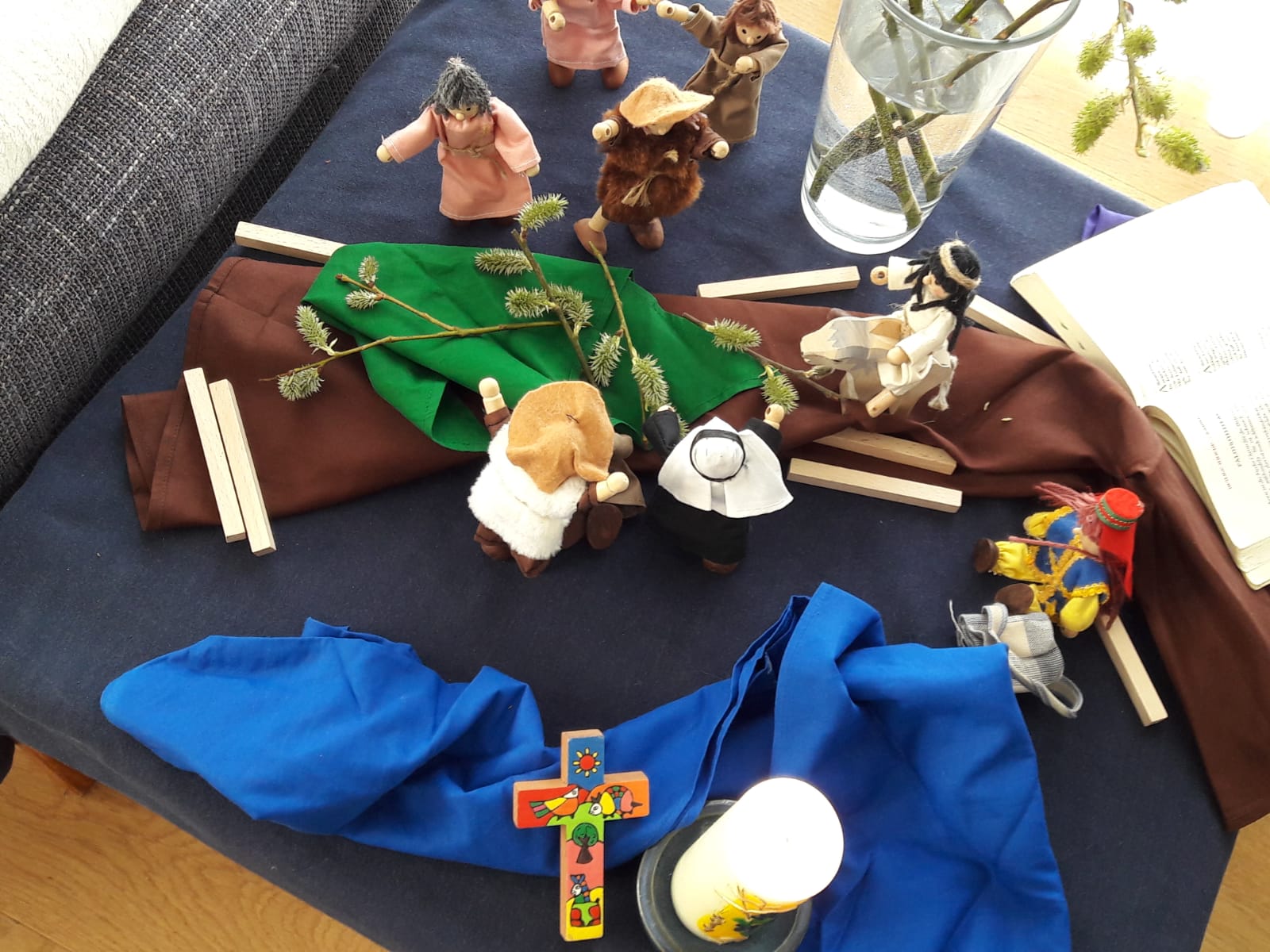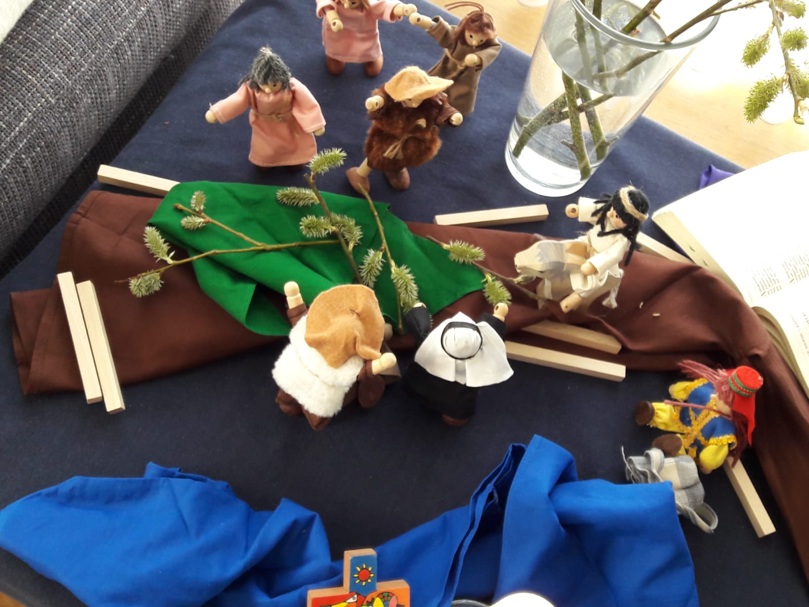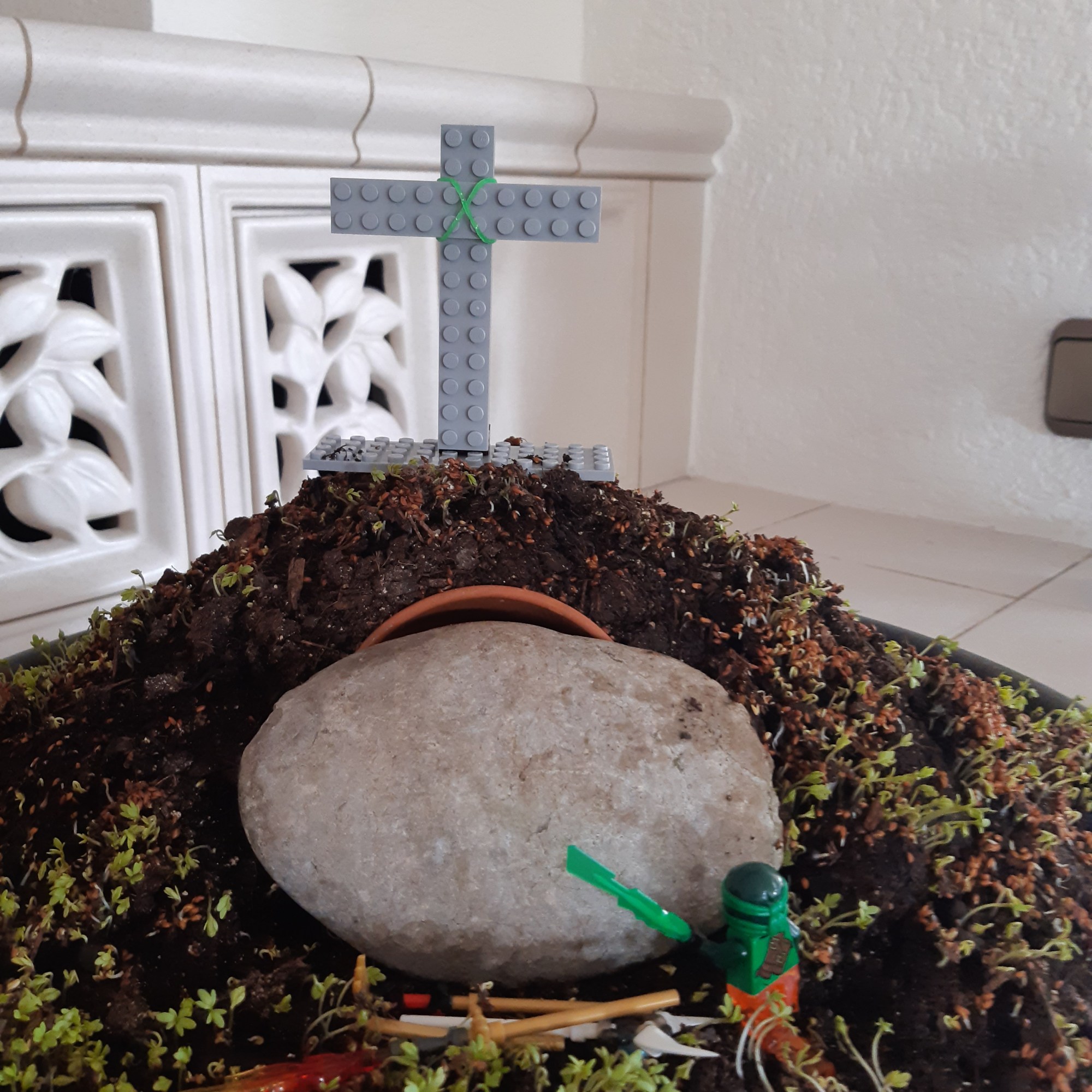 Hier sammeln wir Bilder von Euch, auf denen Ihr die Ostergeschichte kreativ dargestellt habt. Wenn Ihr uns Bilder schickt, nehmen wir sie mit auf. Vielen Dank fürs Mitmachen!