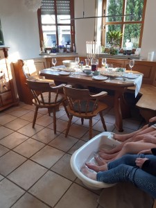 Jüdischer Kerzenhalter, MenoraAbendmahl mit selbstgemachtem Flandenbrot und Fußwaschung