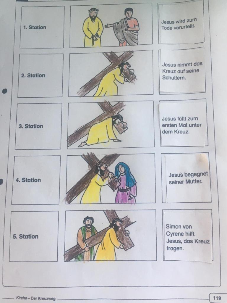 Der Kreuzweg, wie ihn die Schüler der zweiten Klasse lernen.