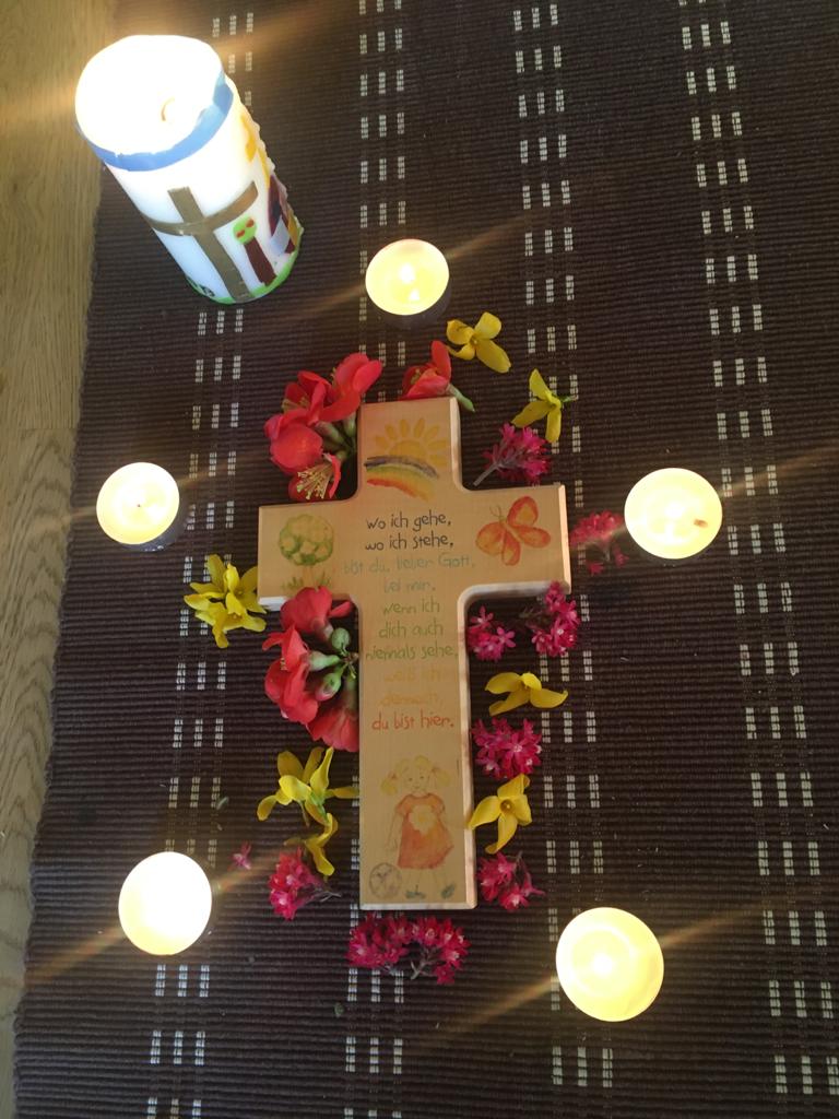 So kann man zu Hause am Karfreitag das Kreuz in den Mittelpunkt rücken. Dankeschön für das schöne Bild!Am Karfreitag vergessene Kreuze besuchen. Was für eine schöne Idee!