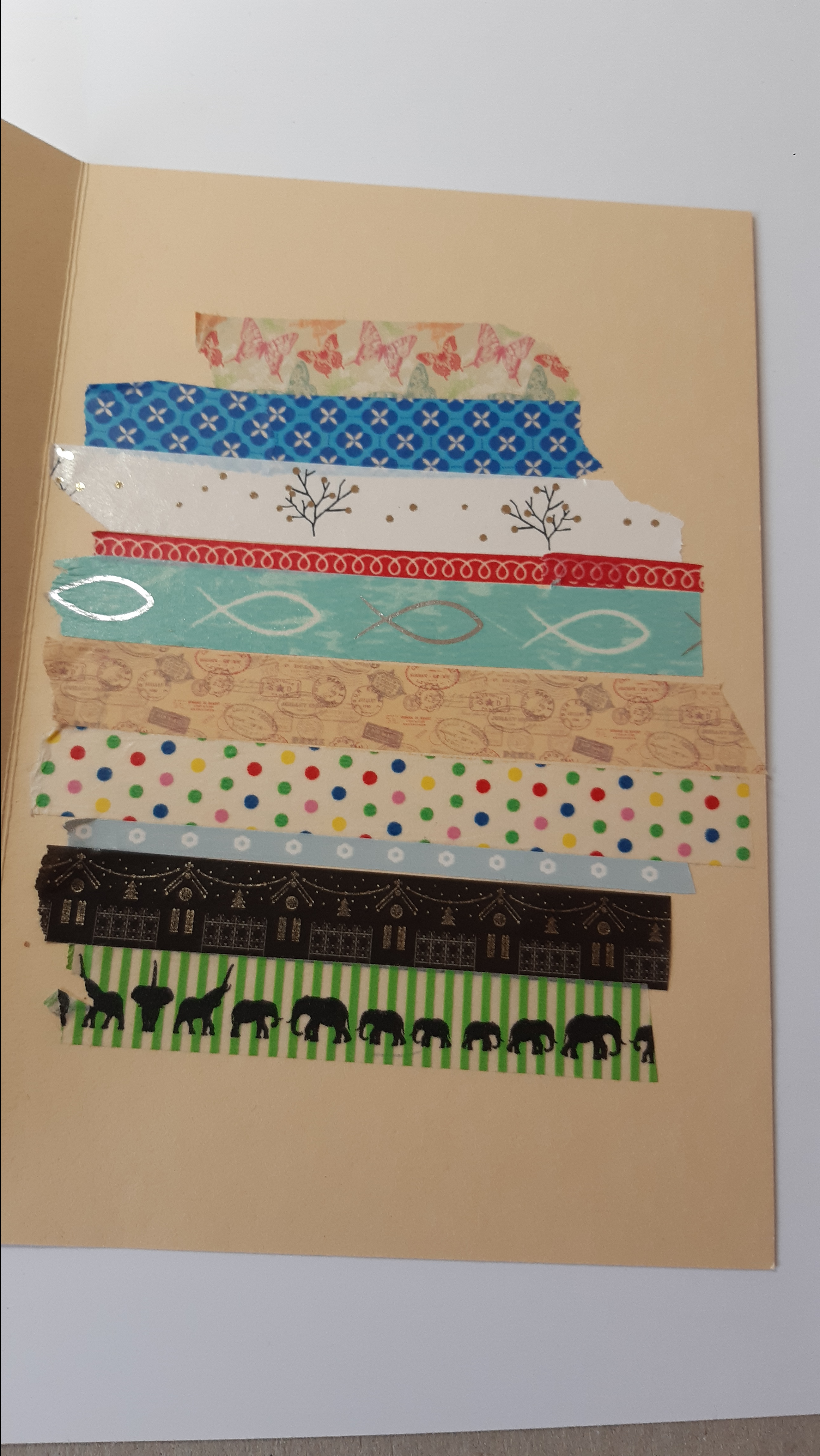 Du musst jetzt auf die rechte innere Kartenseite Washi-Tape kleben.