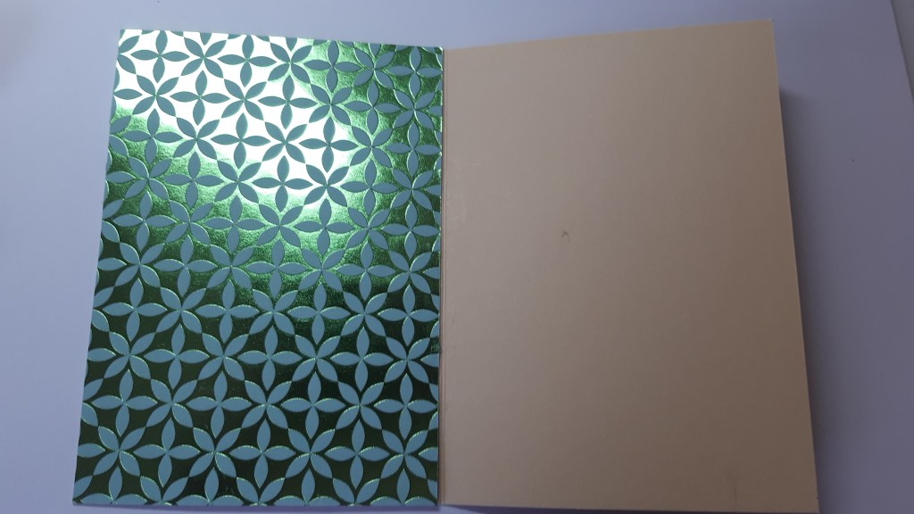 Nimm ein von einer Seite schön verziehrtes Blatt, dass genau so groß ist, wie deine Karte.