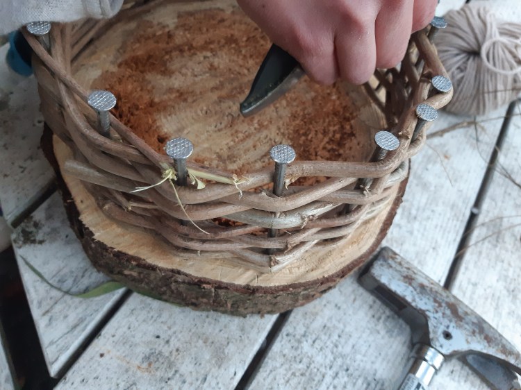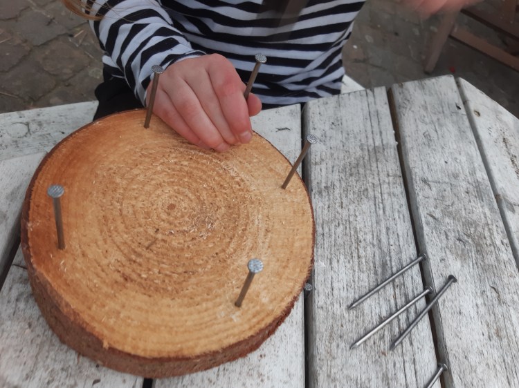 - Die Nägel müssen wirklich fest sitzen, damit man später gut flechten kann.