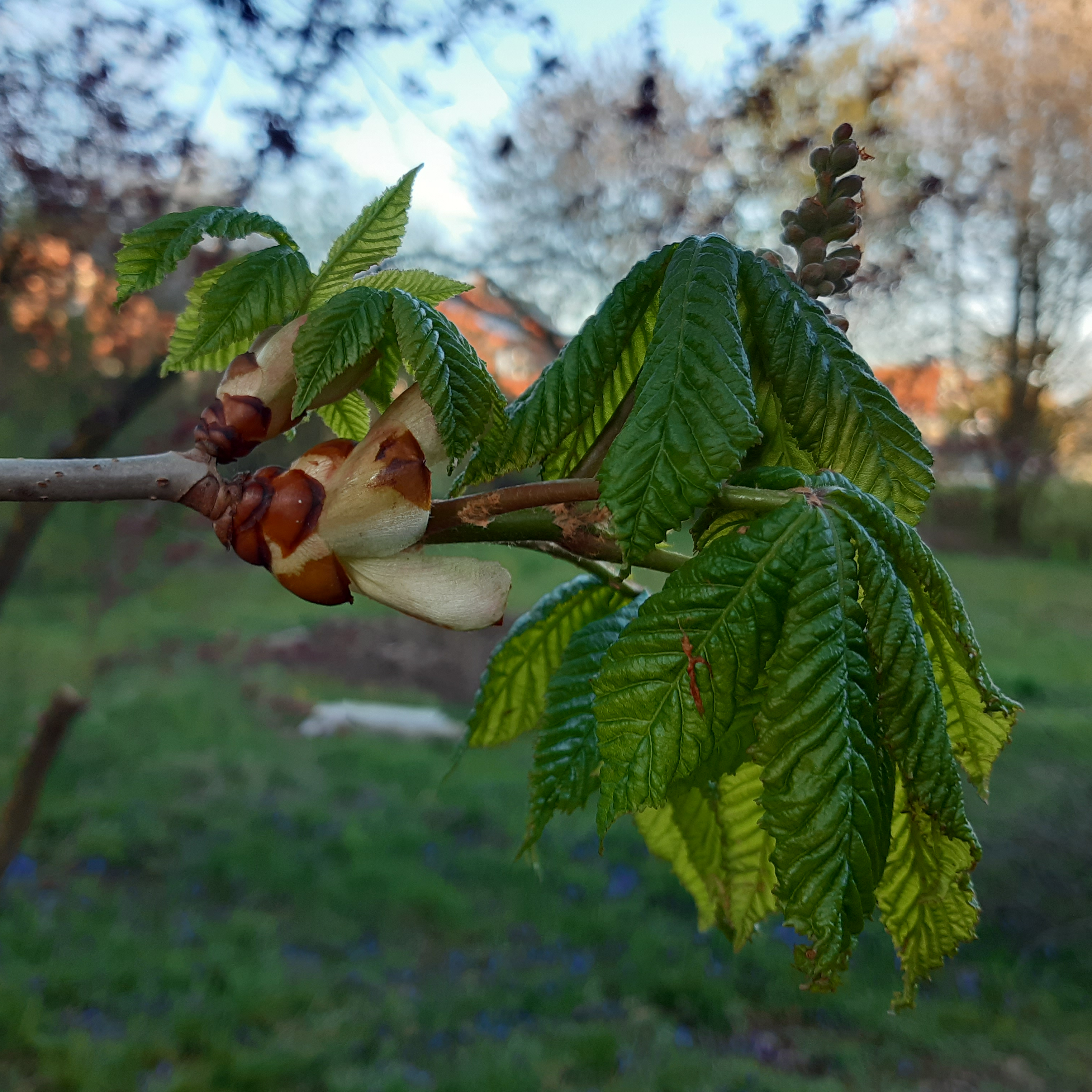 Ostern fiel in diesem Jahr tatsächlich mit dem Durchbruch des Frühlings zusammen. Am Osterwochenende blühten plötzlich ganze Hecken, und die Wiesen waren saftig grün. Sogar der Löwenzahn war schon in Blüte. Ein kleines Wunder: Aus den Knospen der Kastanie sprießen über Nacht die Kastanienblätter!