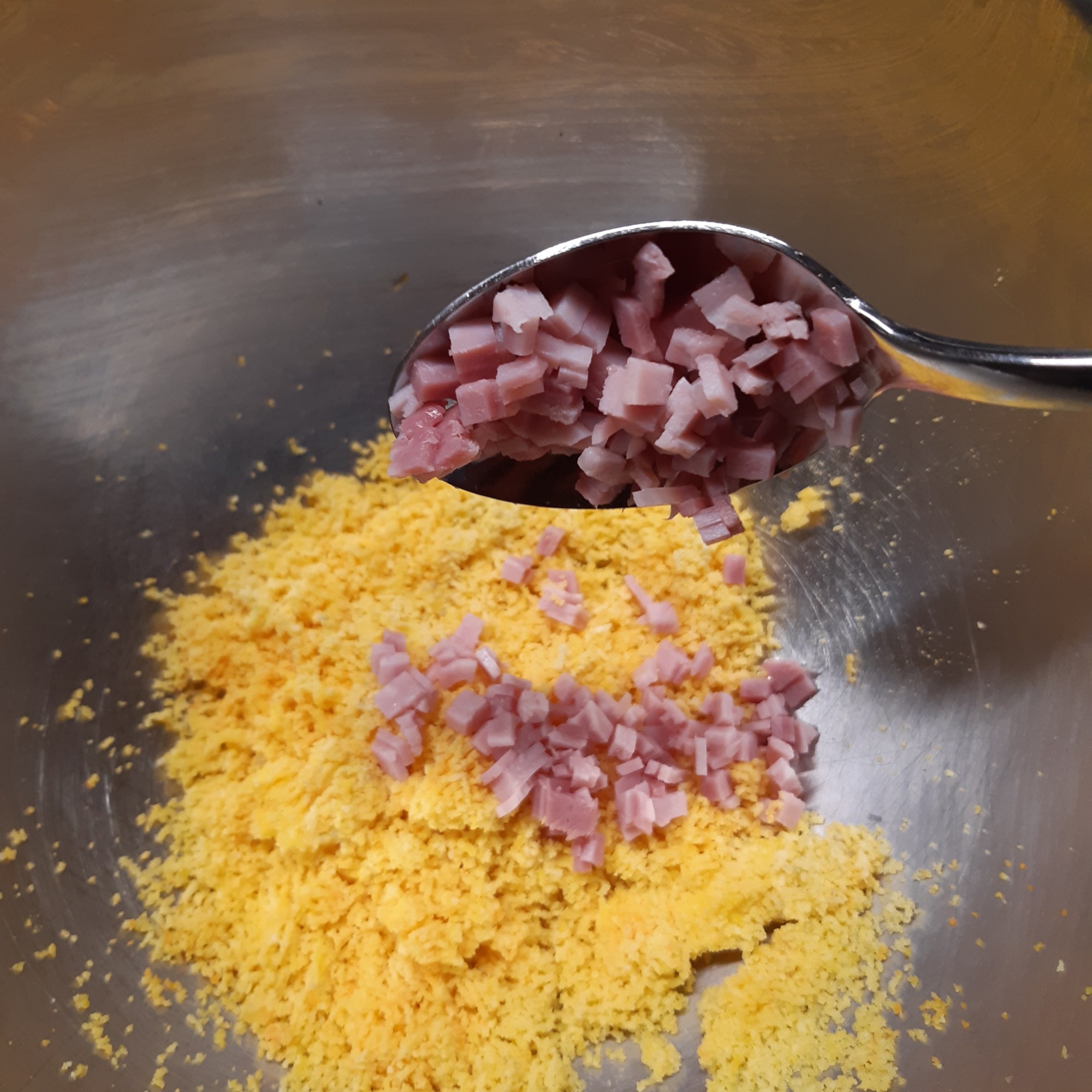 Die Zutaten werden zum Eigelb gegeben und vermischt.