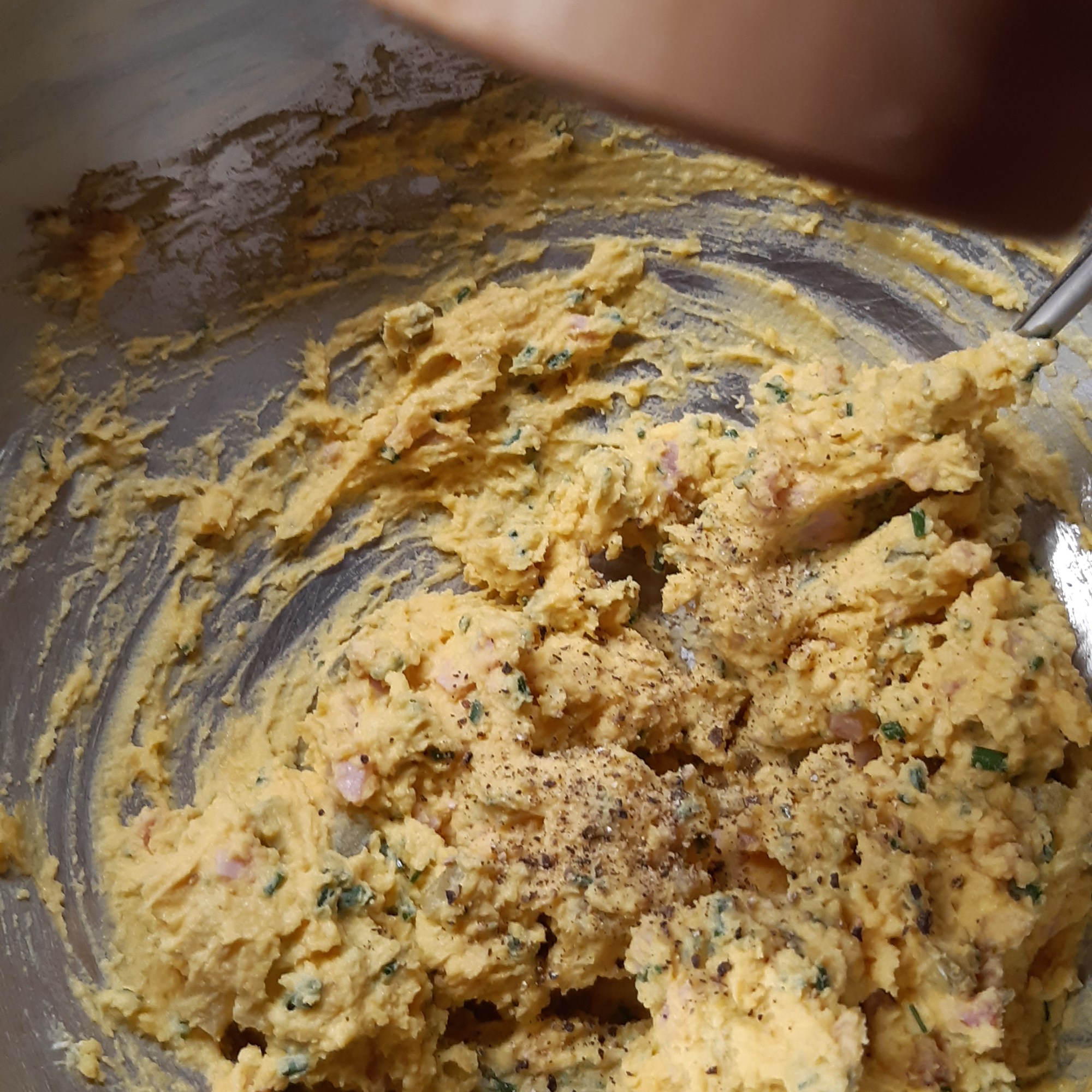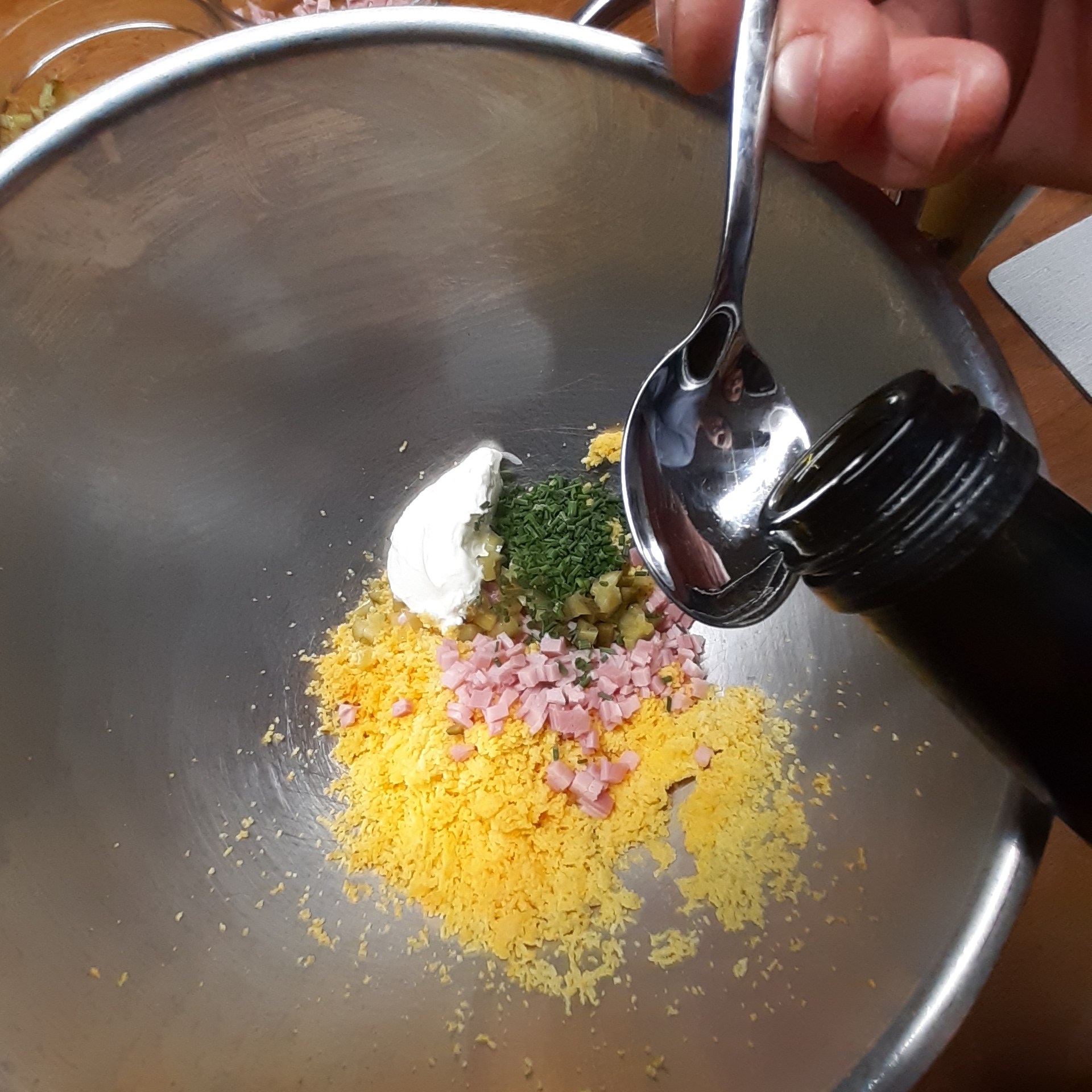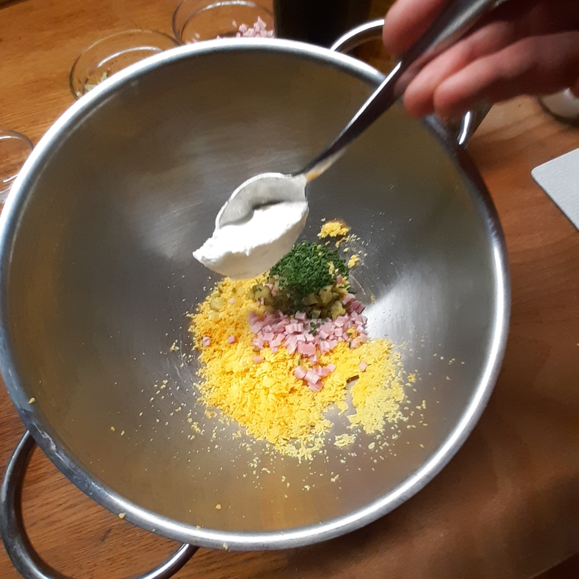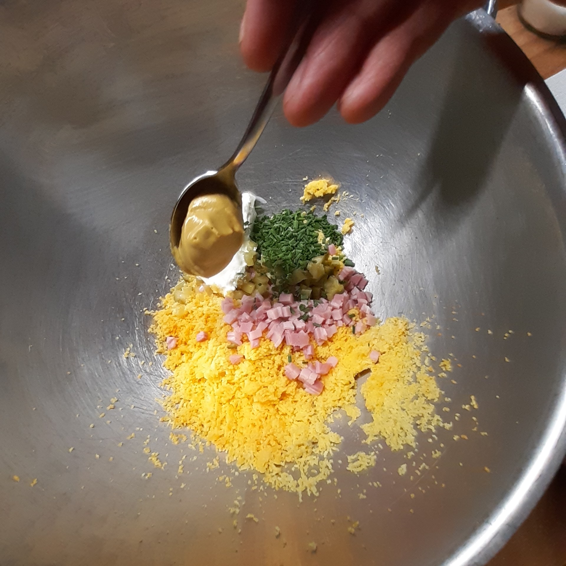 Und so macht ihr die Masse für die „gefüllten Eier“: