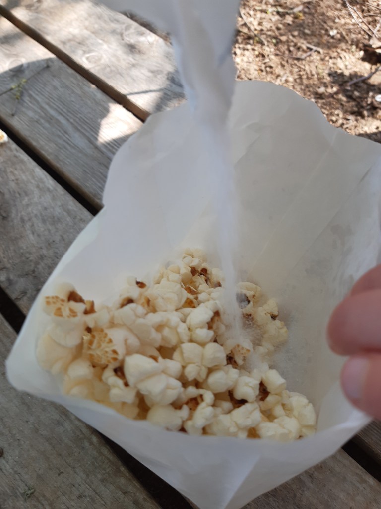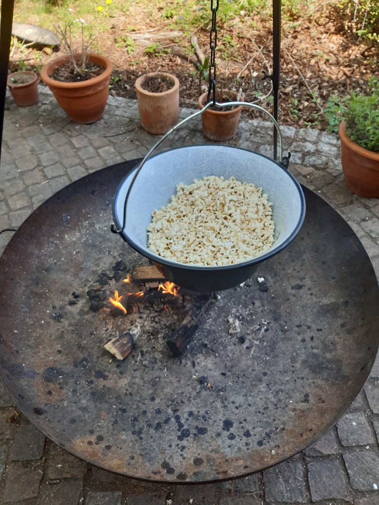 - sobald die Frequenz platzender Popcörner deutlich abnimmt den Topf von der Wäremquelle nehmen, da das Popcorn sonst anbrennt und der ganze Top ungenießbar wird und schwer zu reinigen ist.