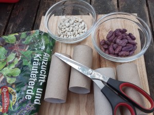 Stangenbohnen vorziehen in Klopapier-Rollen-Töpfchen