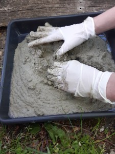 Estrich in geölte Trittsteinform füllen