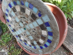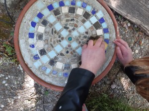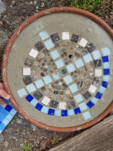 - Nach dem Durchtrocknen die Trittsteine mit einem Schwamm oder evtl. mit einer alten Zahnbürste säubern, sodass die Mosaiksteine optimal zur Geltung kommen, aber nicht rausfallen.