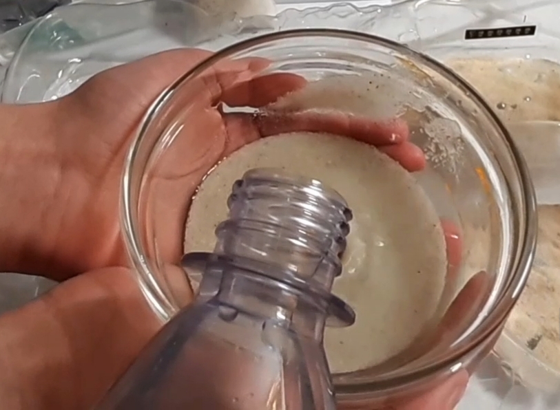 Spült den Sand in der Schüssel mit Leitungswasser aus.