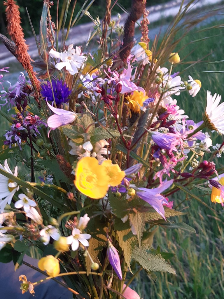 So, hier ist er, unser Wochenendblumenstrauß. So einer, wie ihn die Natur zur Zeit an Wegrand und Wiese für uns bereithält. Ein Maiblumenstrauß 😀.