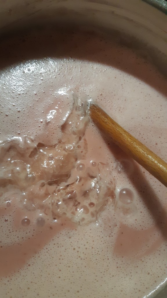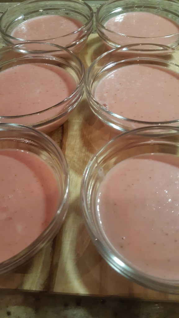 Pannacotta muss schon am Vorabend vorbereitet werden, damit die Masse fest wird. Das spielt uns in die Karten! Also wird aus der letzten Packung tiefgekühlter Erdbeeren aus dem Vorjahr eine delikate Erdbeer-Pannacotta. 🍓😋🍓
