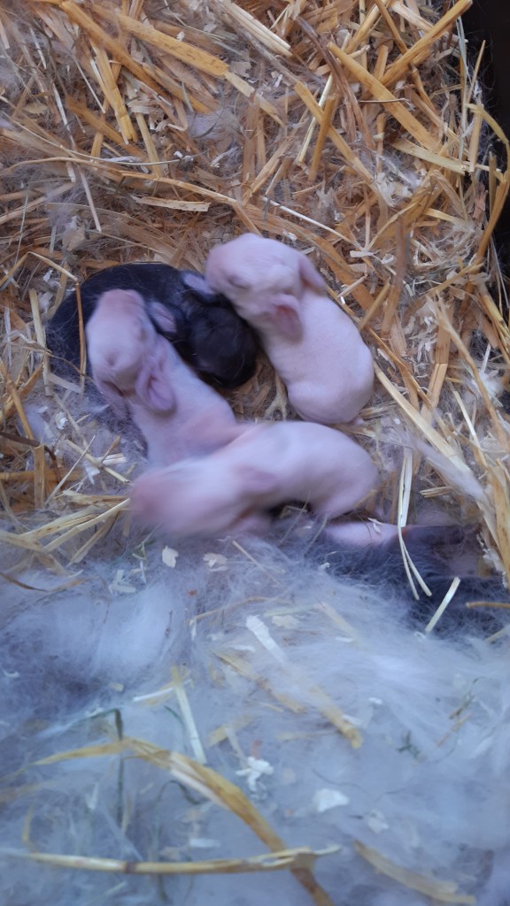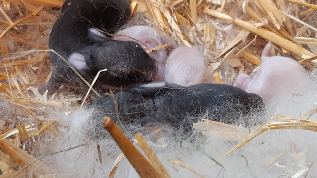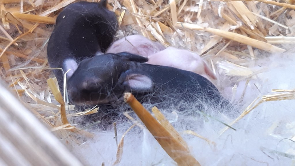Die Kaninchenbabys sind seit ihrer Geburt schon etwas gewachsen und nehmen langsam die richtige Form eines Kaninchens an.