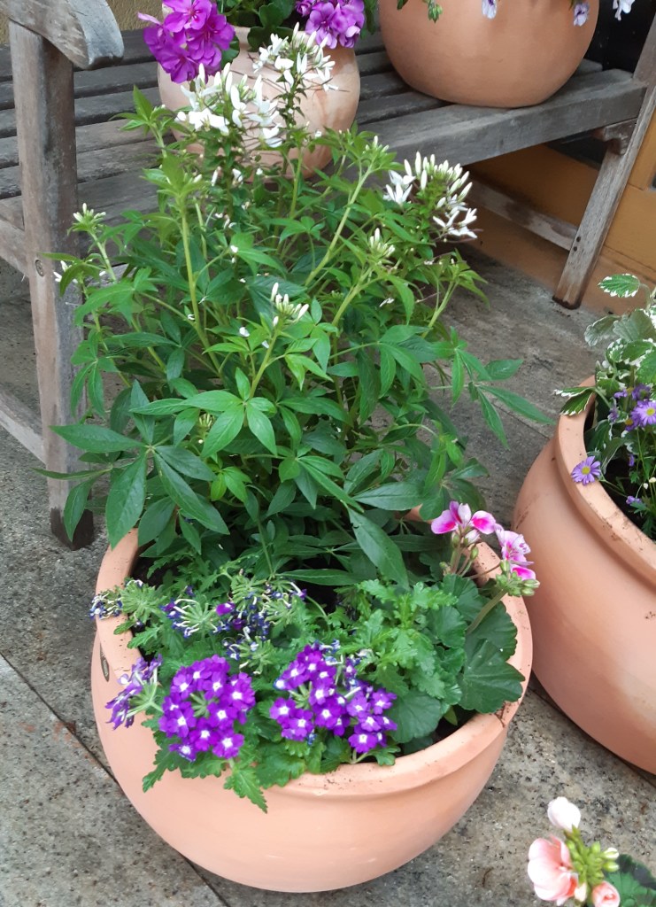 Spinnenblume, Verbene und Geranie