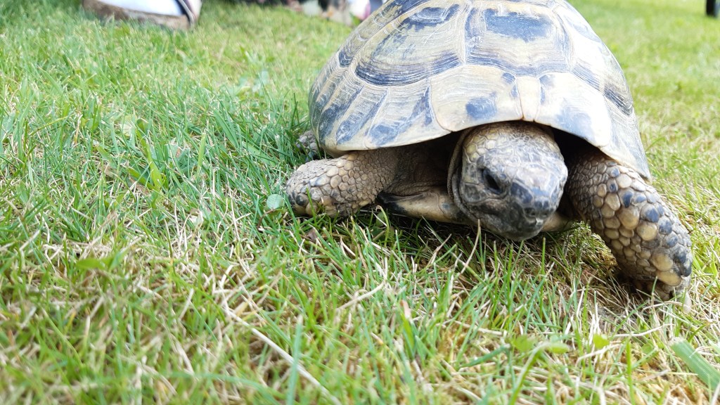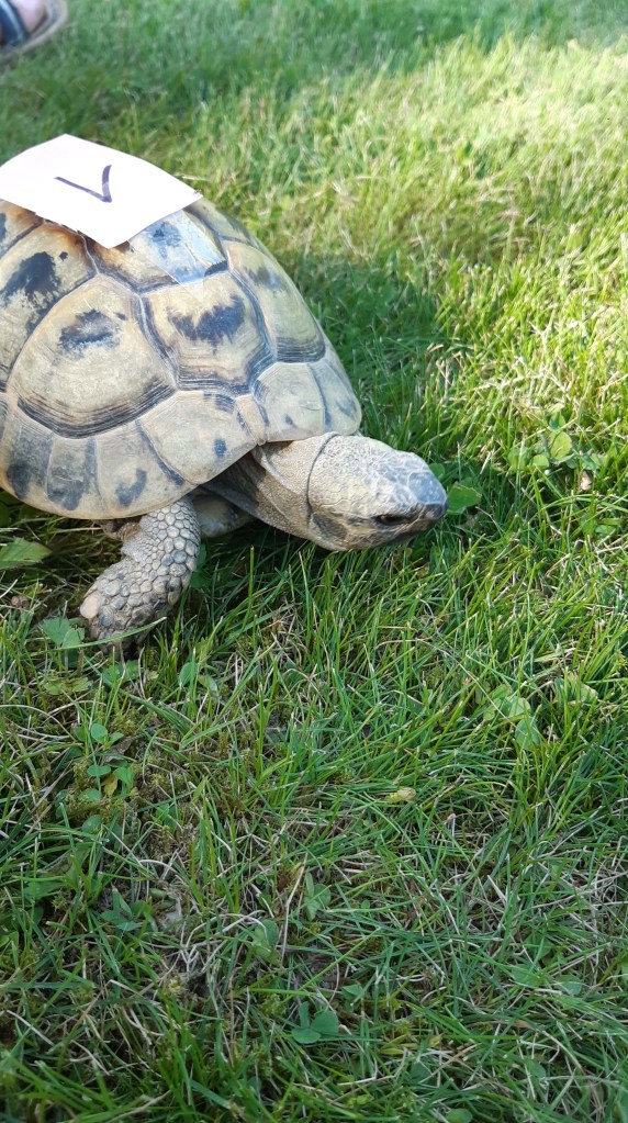 Unsere Cousinen haben drei Schildkröten und es macht sehr viel Spaß mit ihnen Schildkrötenwettrennen zu veranstalten!