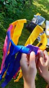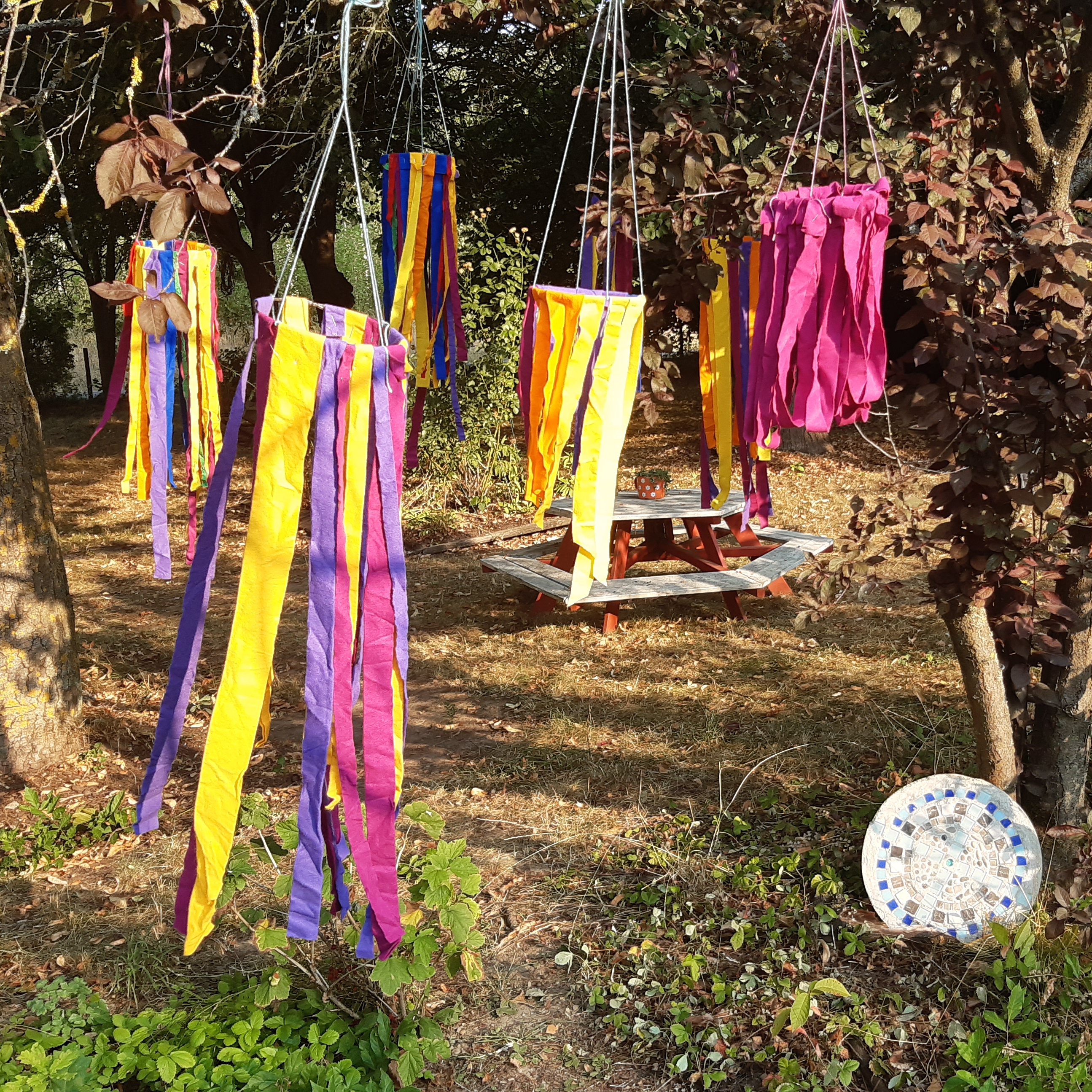 Die Luft steht in unserem Garten. Seit Tagen über 30°C und viel zu wenig Wasser… Basteln geht aber immer, und für unsere Zeltlager und Sommer-Outdoor-Festchen können wir es auch noch ein bisschen bunter brauchen. Also nix wie los, wir zeigen Euch, wie man spielend leicht diese farbenfrohen Windspiele bastelt: