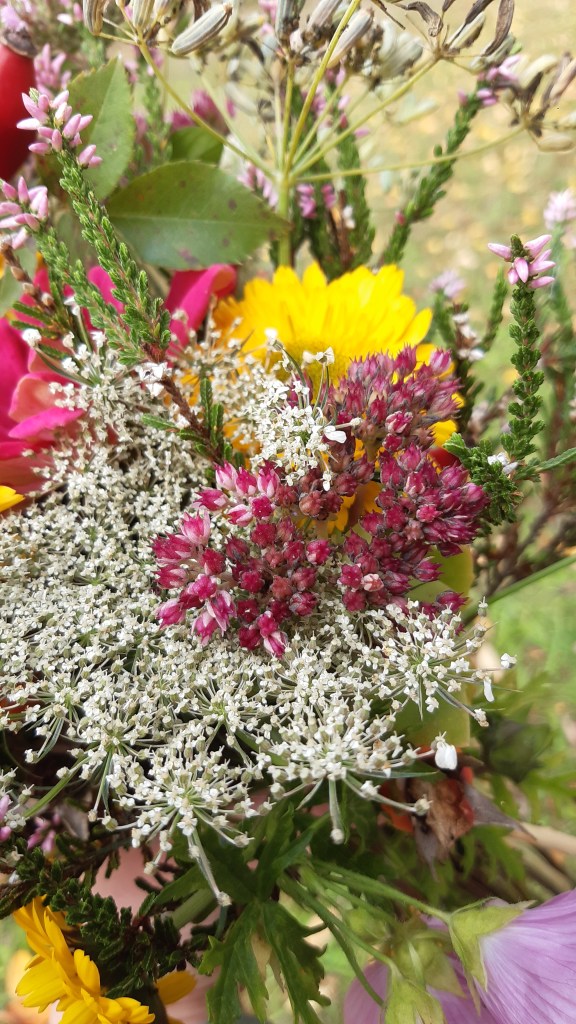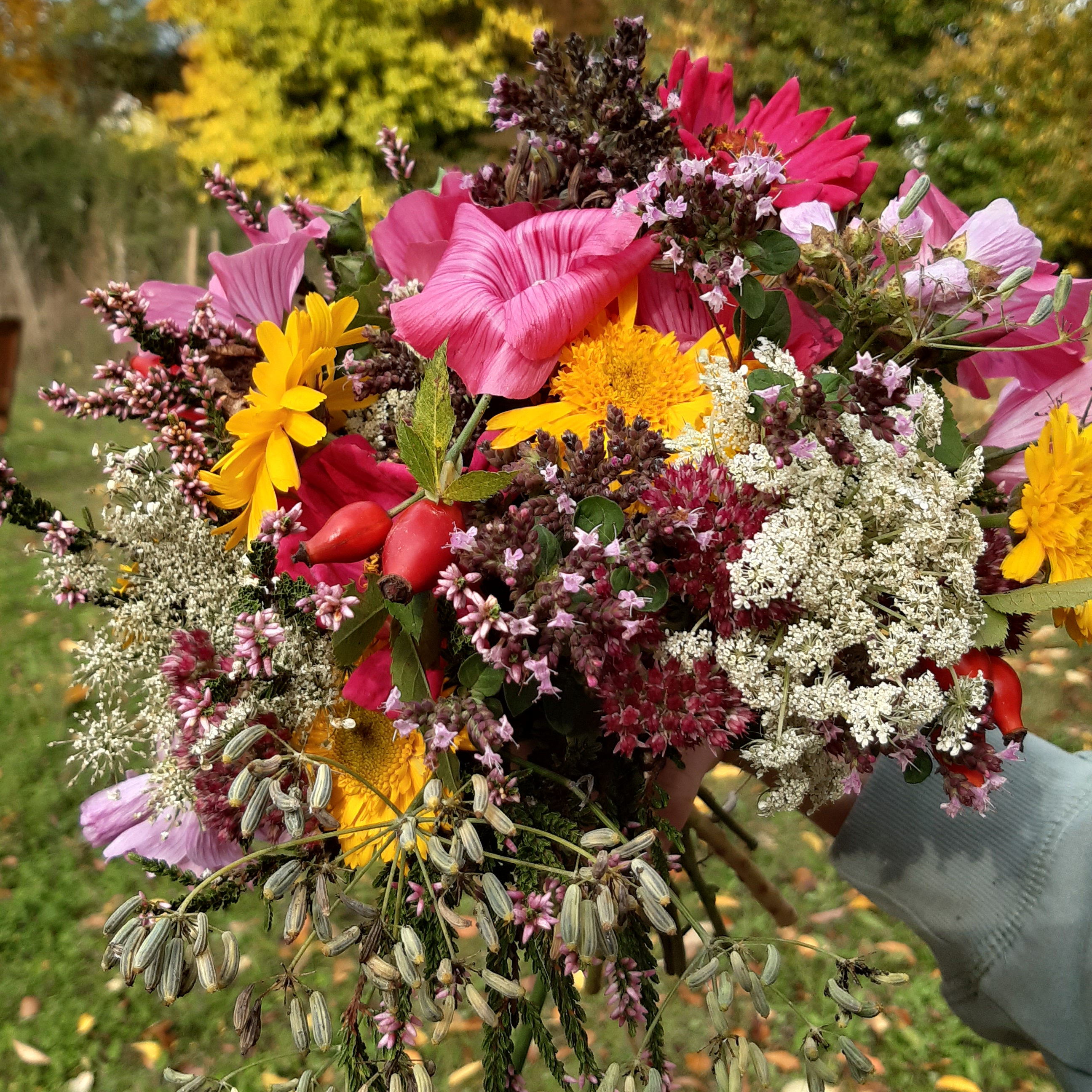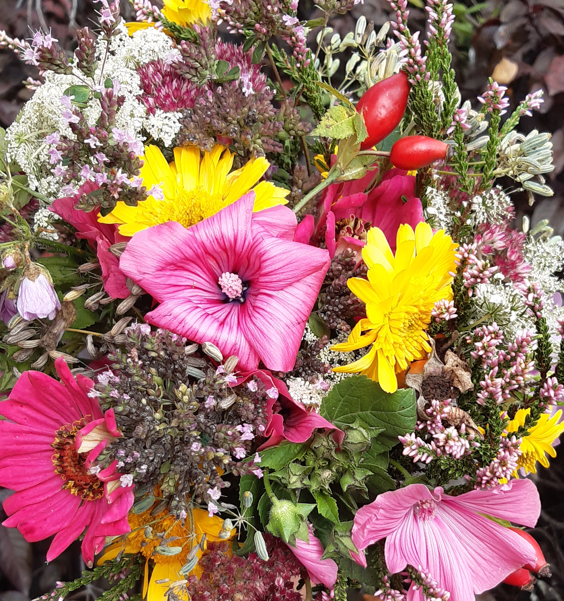 Der Garten ist ringsum voller Farben! Blumen gibt es auch noch ein paar. Da muss am Wochenende noch ein Strauß auf den Kaffeetisch!