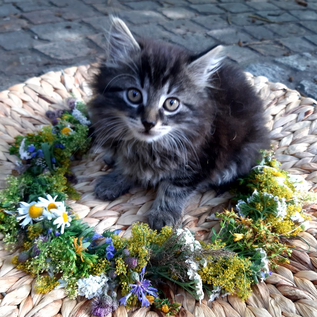 Am nächsten Morgen ist der Wildkräuterkranz doch noch ganz schön. Das findet auch unser #Katzenbaby Molly: