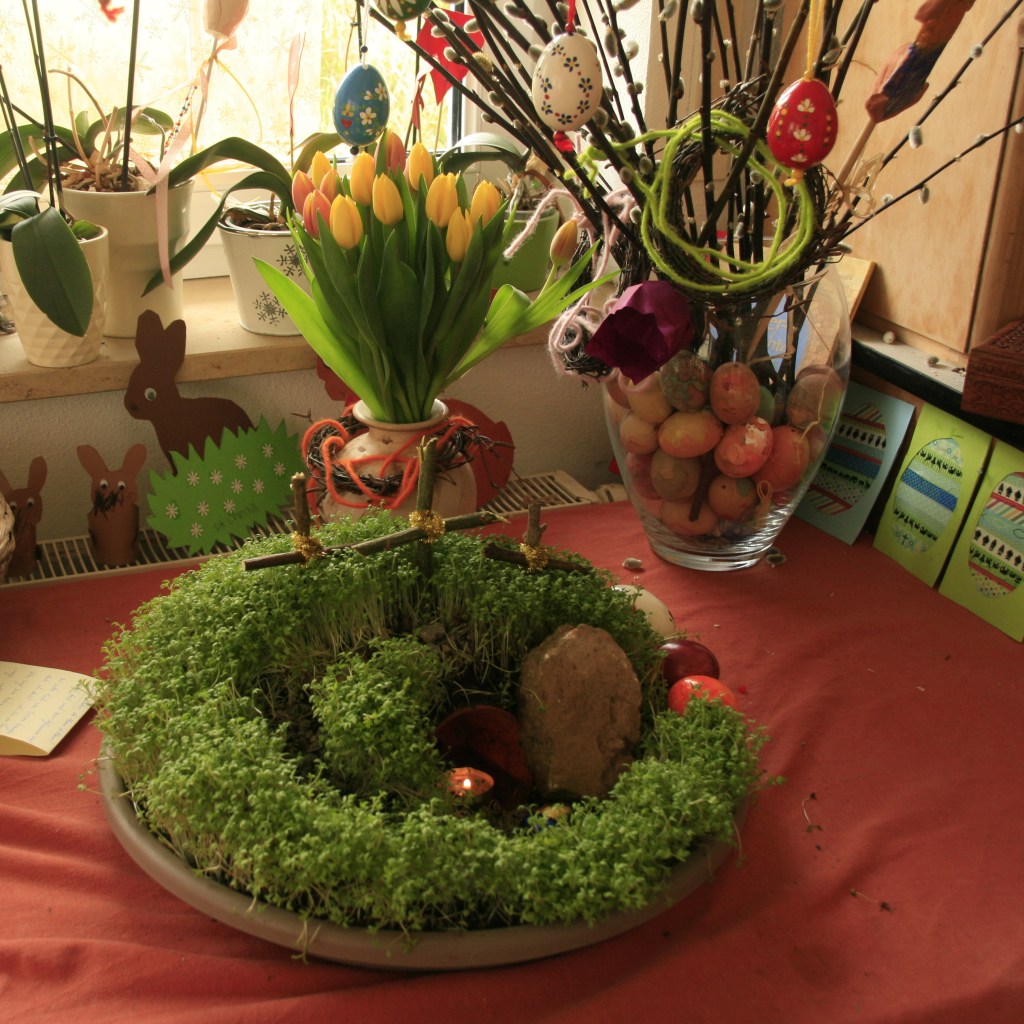 In diesem Jahr fallen ÜBERALL, tatsächlich WELTWEIT (wie unfassbar!) die Feste und Feiern, die Gottesdienste und Traditionen rund um Ostern aus. Zumindest so, wie wir sie gewohnt sind. Wie schade, wenn die Kinder nicht in der Gemeinschaft von Schule oder Kirche die Geschichte von Jesu Tod und Auferstehung erleben dürfen. Mit Oma ein Osterlamm backen, die Eier färben, Nester suchen… schwierig. Beschränkt auf Mama, Papa, Kinder. Alles andere findet in diesem Jahr höchstens digital statt. Hier in unserem Blog wollen wir Euch Anregungen und Einblicke geben für eine Karwoche und Osterzeit voller Geschichten, Ideen und Rituale. Schaut rein, ihr werdet bestimmt auch etwas passendes für Eure Familie finden!